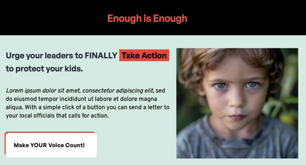 The primary objective was to increase letter submissions. While motivating website visitors to take action presented challenges, we determined that the most effective strategy was to simplify the experience and remove unnecessary friction. A strong, purpose-driven visual design was implemented to guide user engagement, and the form submission process was streamlined into a single, consolidated screen. By presenting all required content at once, we reduced cognitive load, minimized friction, and improved the likelihood of completion.