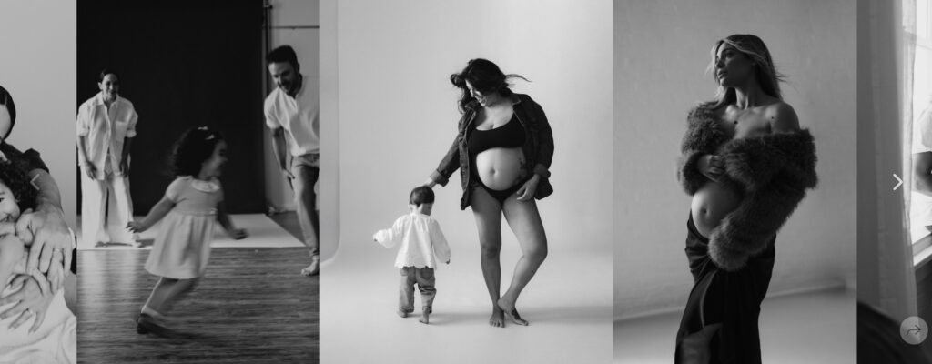 Photography studio specializing in maternity shoots, offering wardrobe and posing advice. Known for capturing timeless, elegant maternity photos that feel effortless yet stunning.